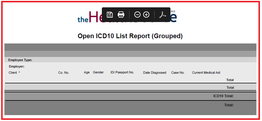 A report for Open ICD10 List Report (Grouped) will be shown below.