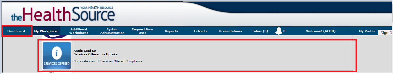 2. CLick on the icon Anglo Coal SA Services Offered vs Uptake as highlighted below.